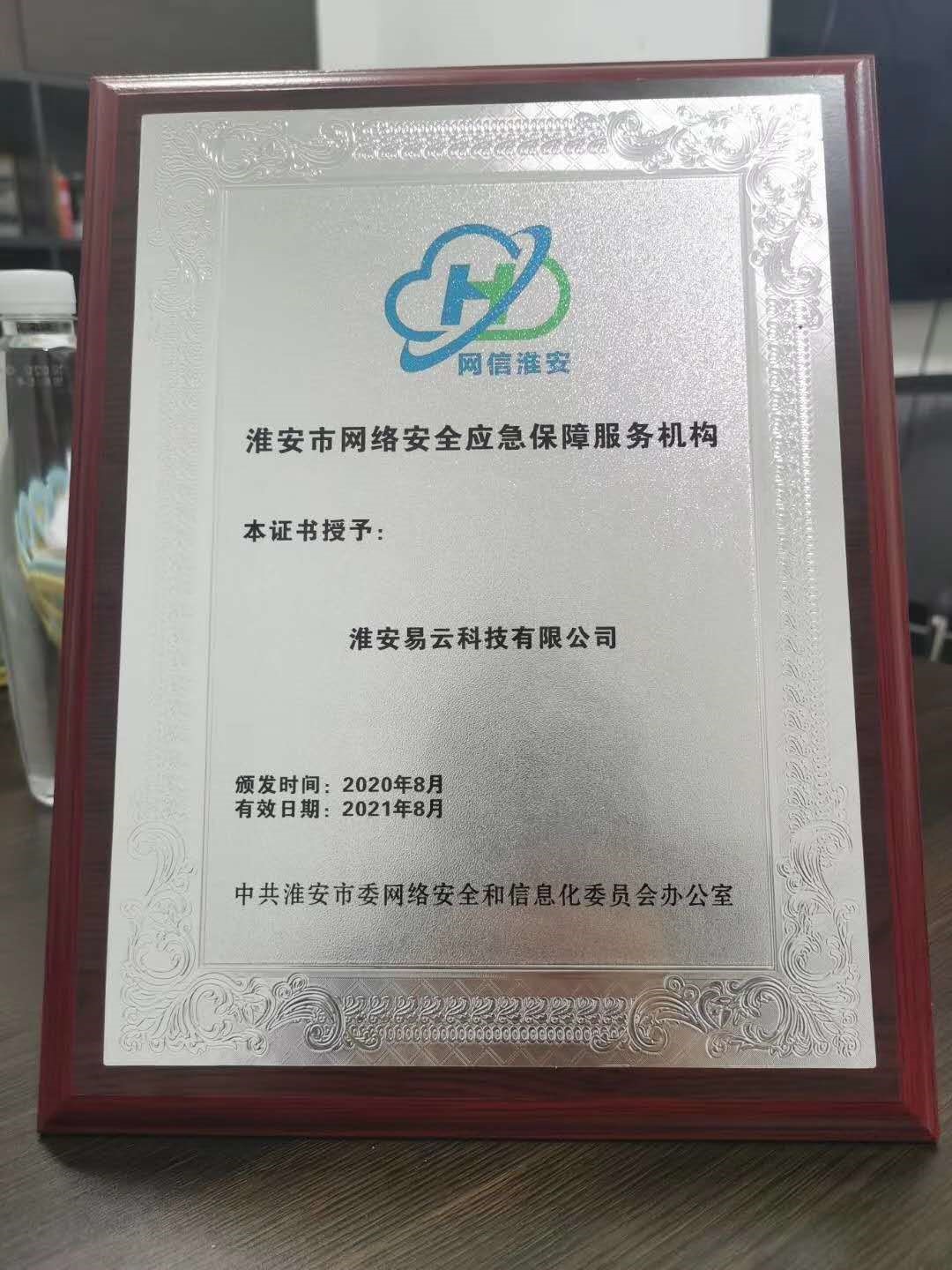 2020年8月31日,淮安市召開“網(wǎng)安2020 淮安行動總結(jié)會暨網(wǎng)絡(luò)安全工作推進會”,總結(jié)了淮安行動開展情況,推進全市網(wǎng)絡(luò)安全工作責(zé)任落實。公司受邀參加會議并榮獲淮安市網(wǎng)絡(luò)安全應(yīng)急保障服務(wù)機構(gòu)證書。